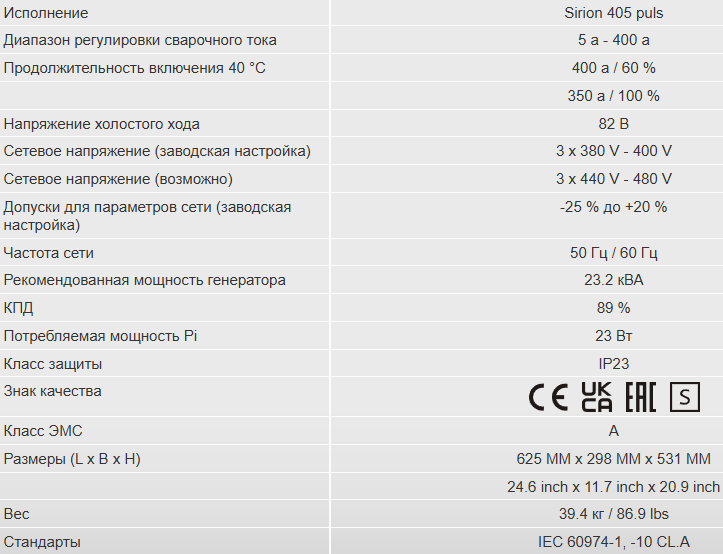 Нет необходимости дополнительно приобретать сварочные характеристики, так как для этого типа аппарата все характеристики включены в объем поставки