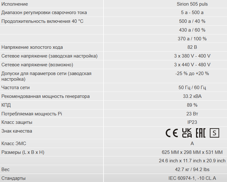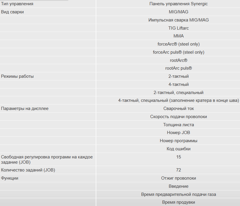 Нет необходимости дополнительно приобретать сварочные характеристики, так как для этого типа аппарата все характеристики включены в объем поставки